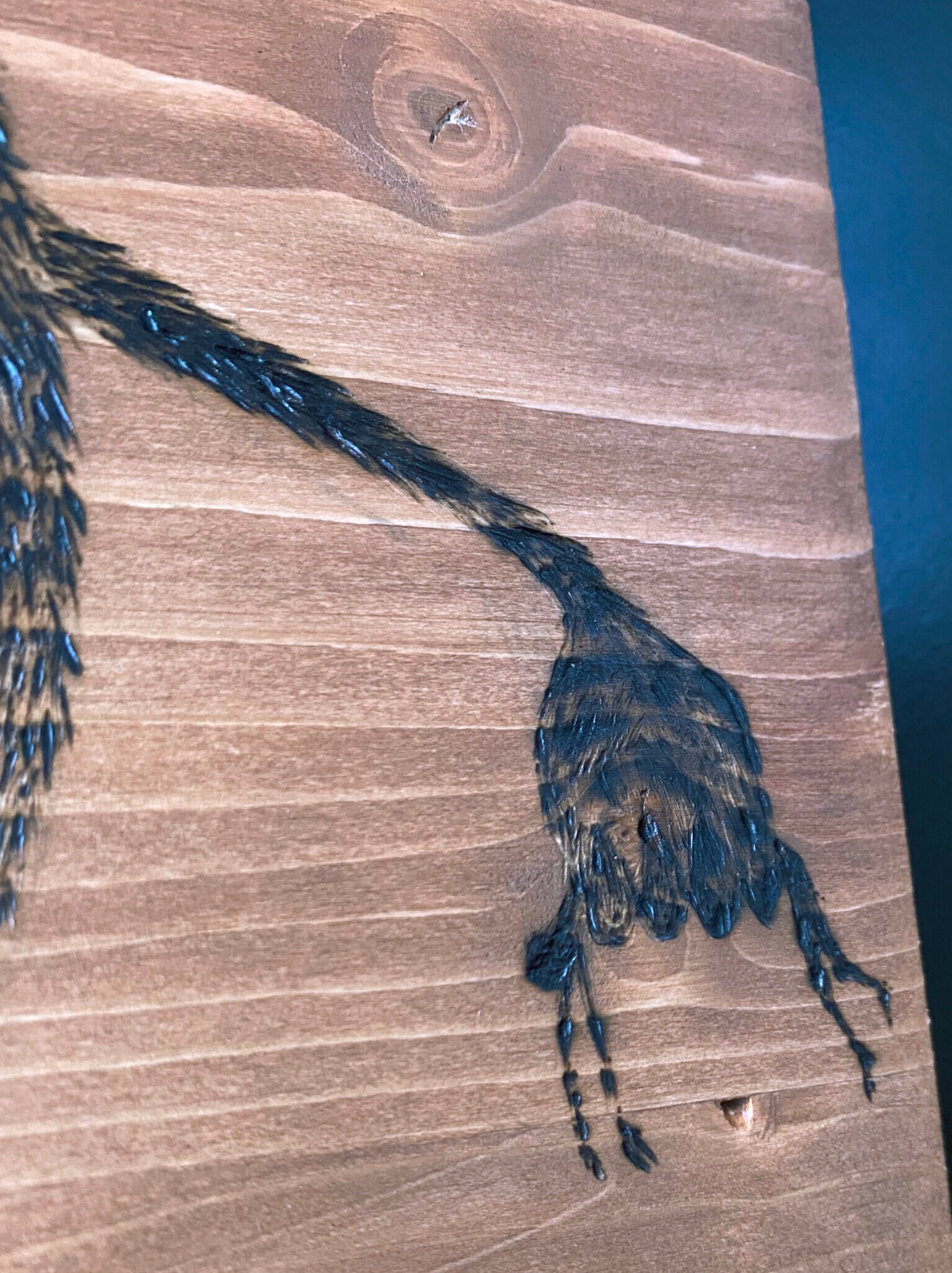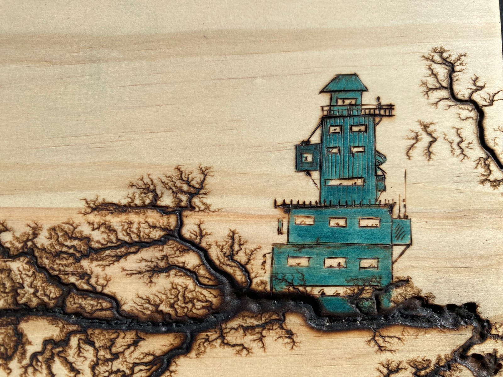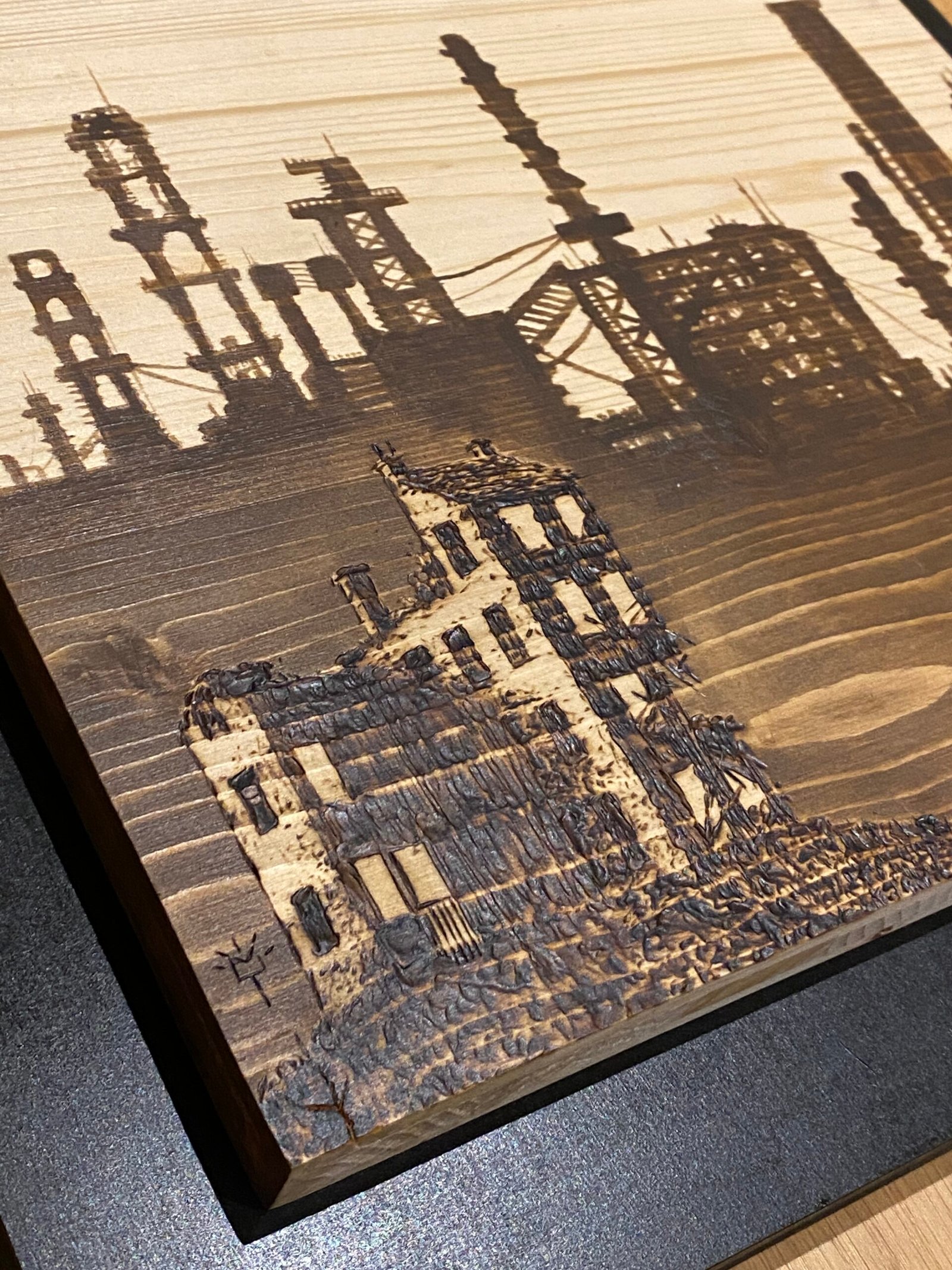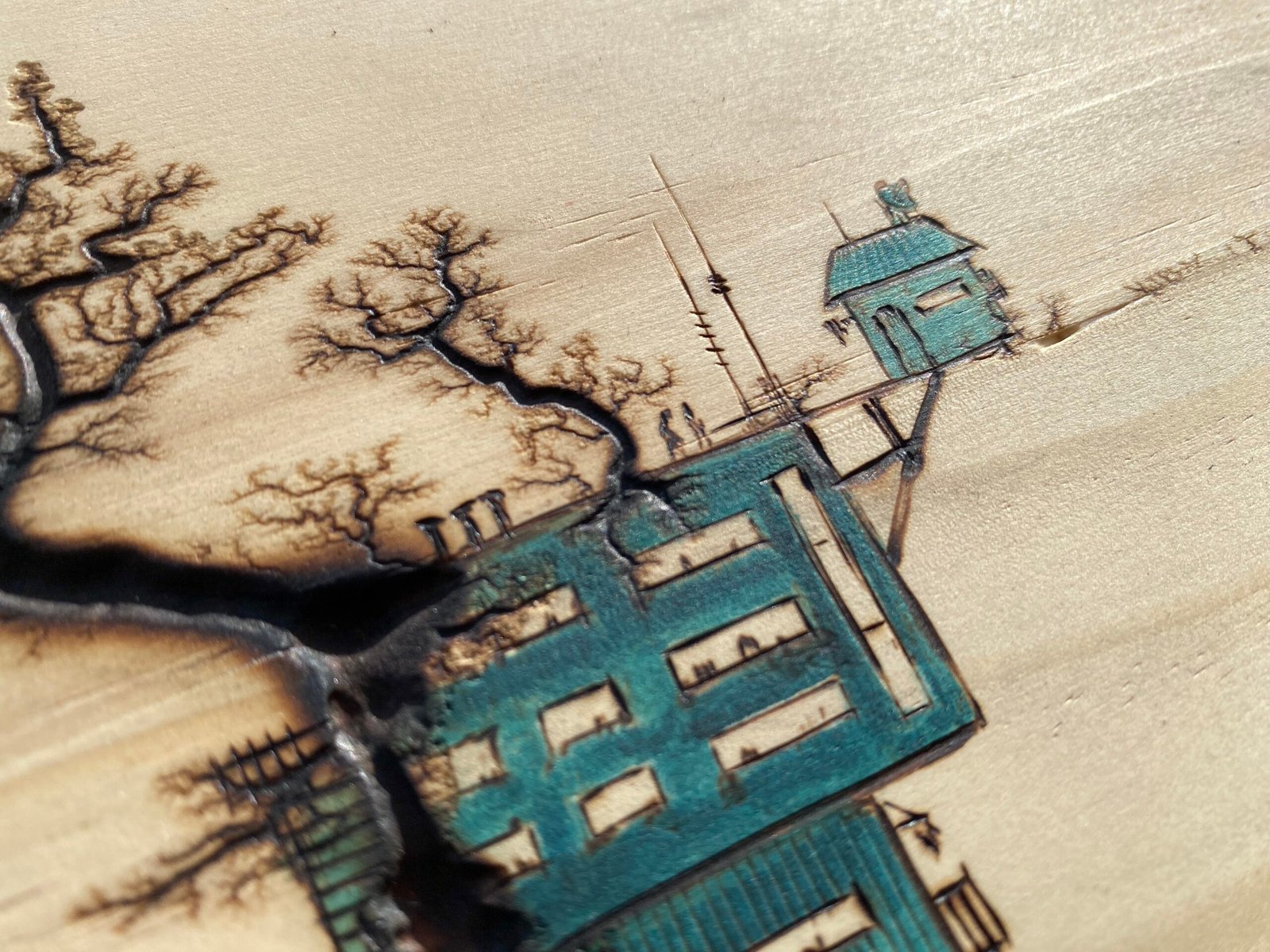 Gravure aléatoire par courant électrique (Fractales de Lichtenberg) / Pyrogravure / Peinture / Saturateur / Vernis