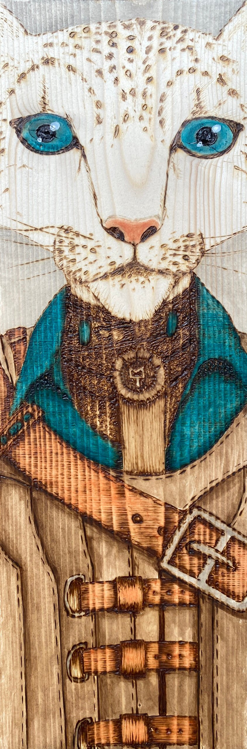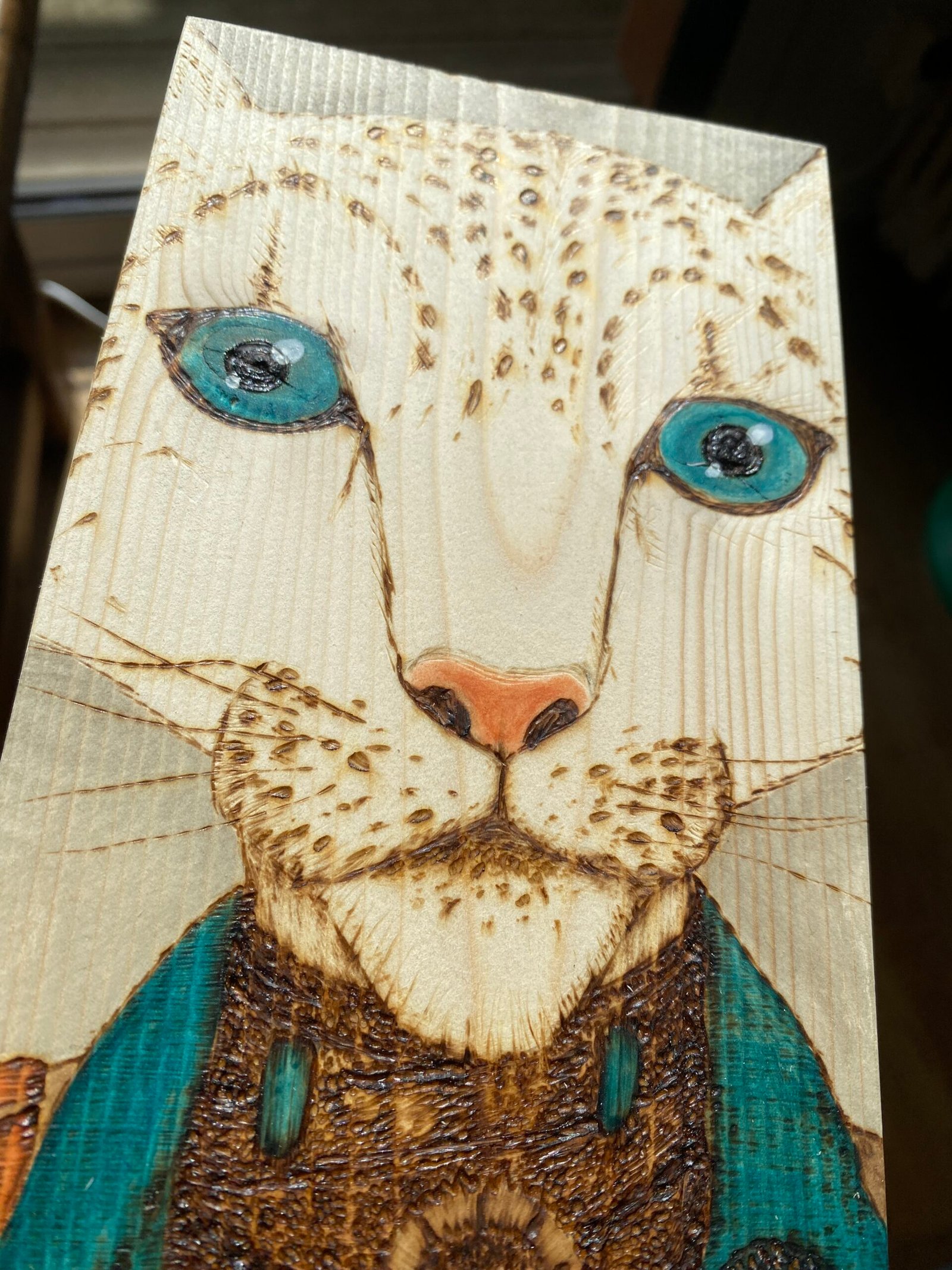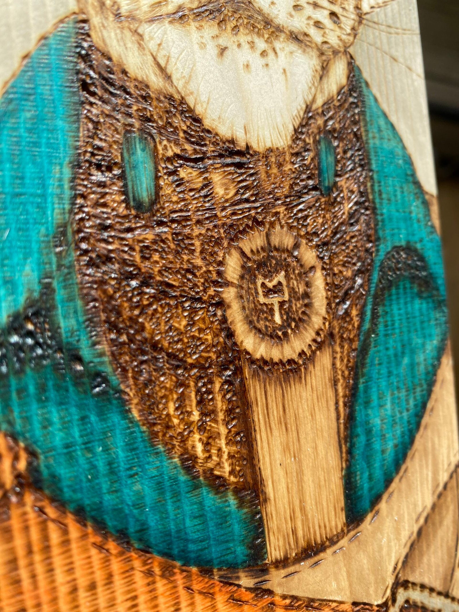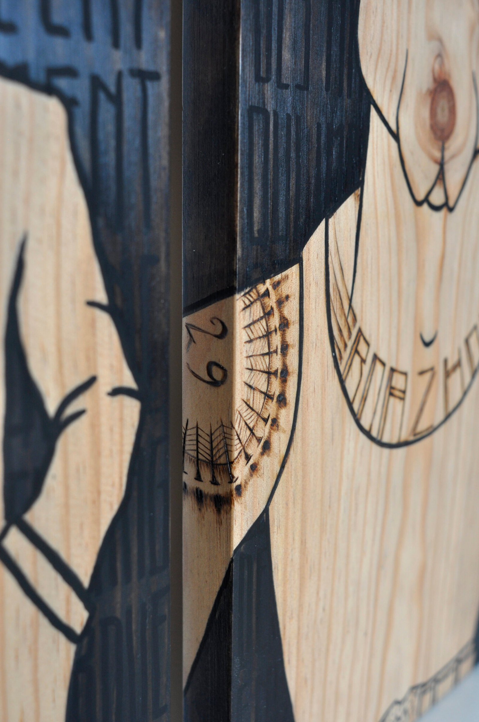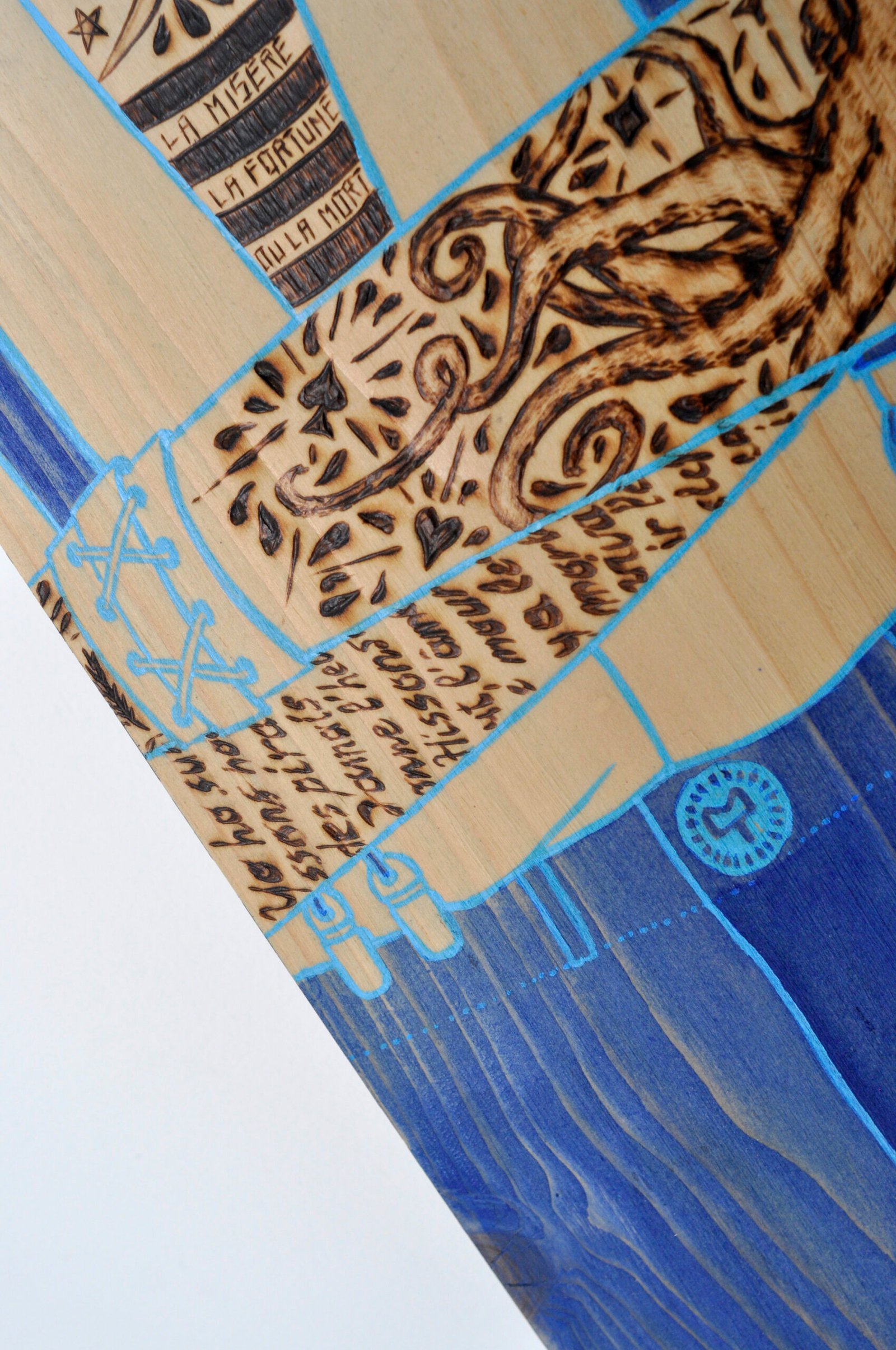 Sapin massif _ 16 x 55 cm Pyrogravure / Peinture