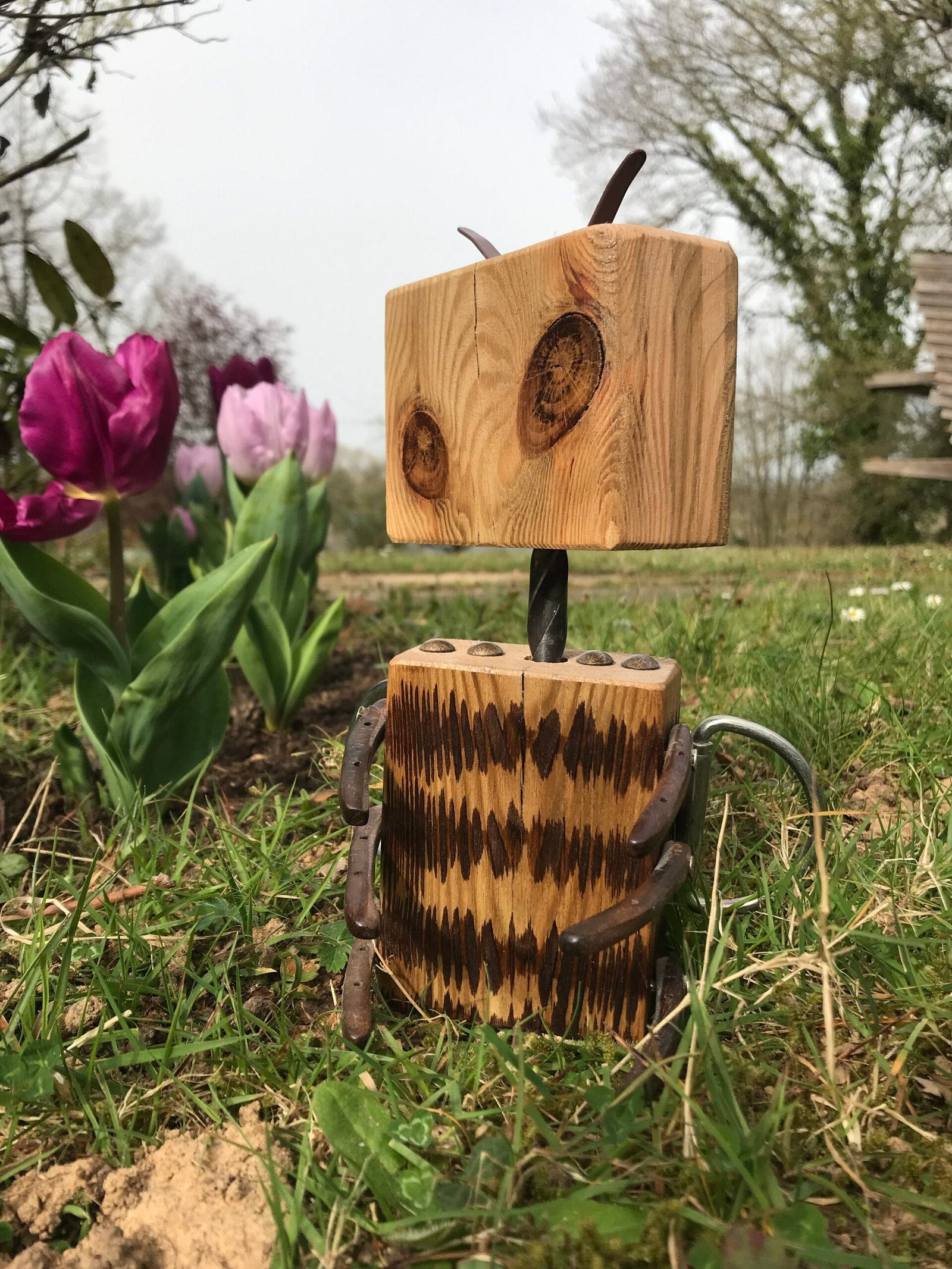 Sapin et composants métal de récup _ diverses dimensions Techniques diverses dont assemblage de chutes de bois / Peinture / Saturateur...