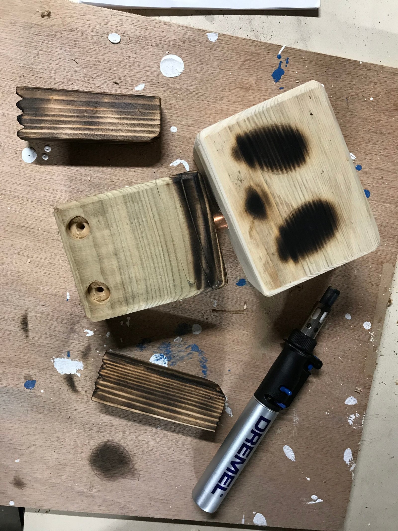 Sapin et éléments de vélo _ h.35cm Shou sugi ban / Assemblage de chutes de bois / Peinture
