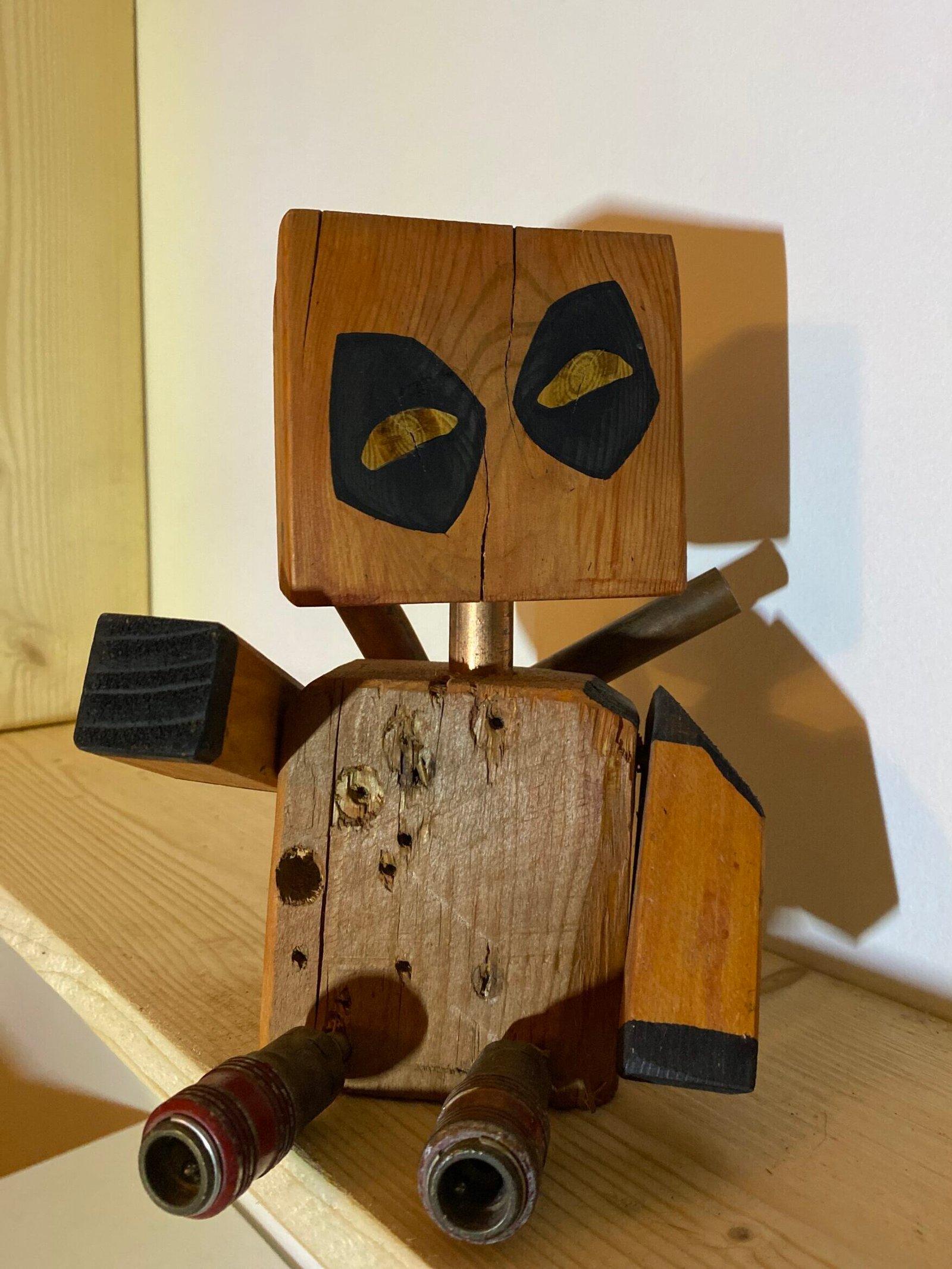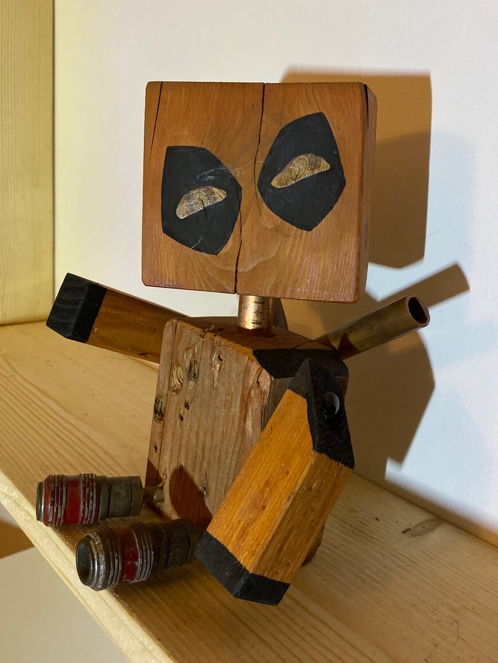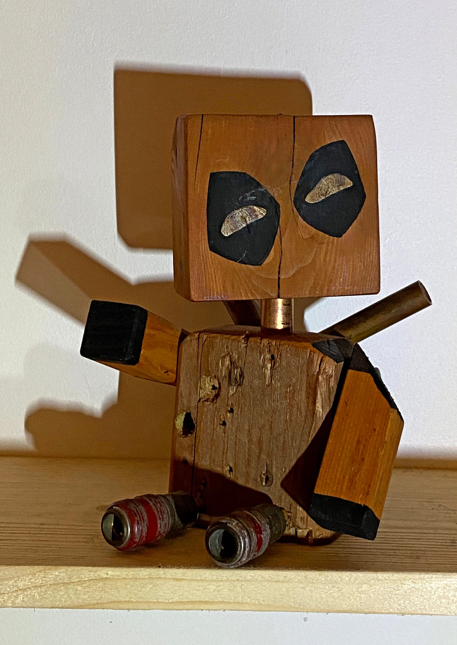 Un martyr dans mon atelier est devenu le tronc de ce personnage et deux nœuds imitent les yeux. Simplicité mais efficacité pour créer ce super héros miniature.
